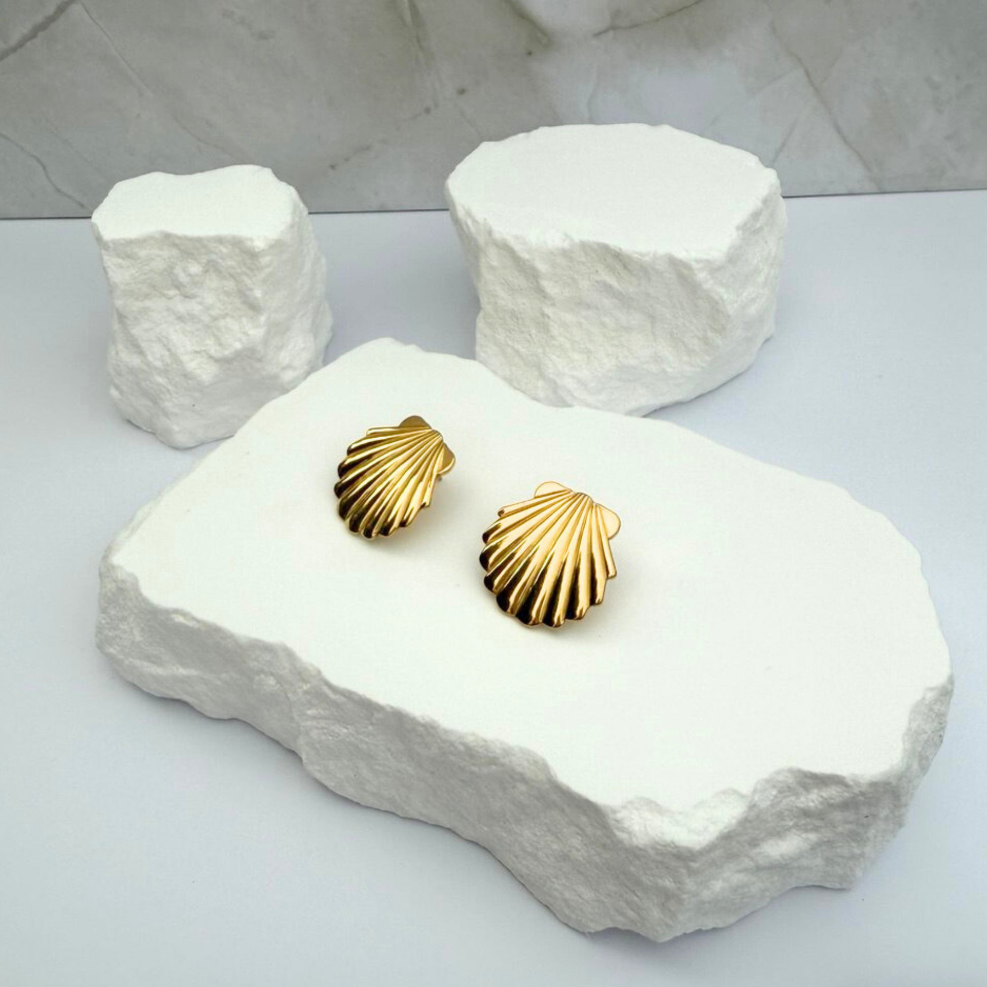 Capture the essence of the ocean with our Seashell Studs. These elegant earrings feature a delicate shell design with grooved details that beautifully reflect light, making them a unique and charming addition to your collection.