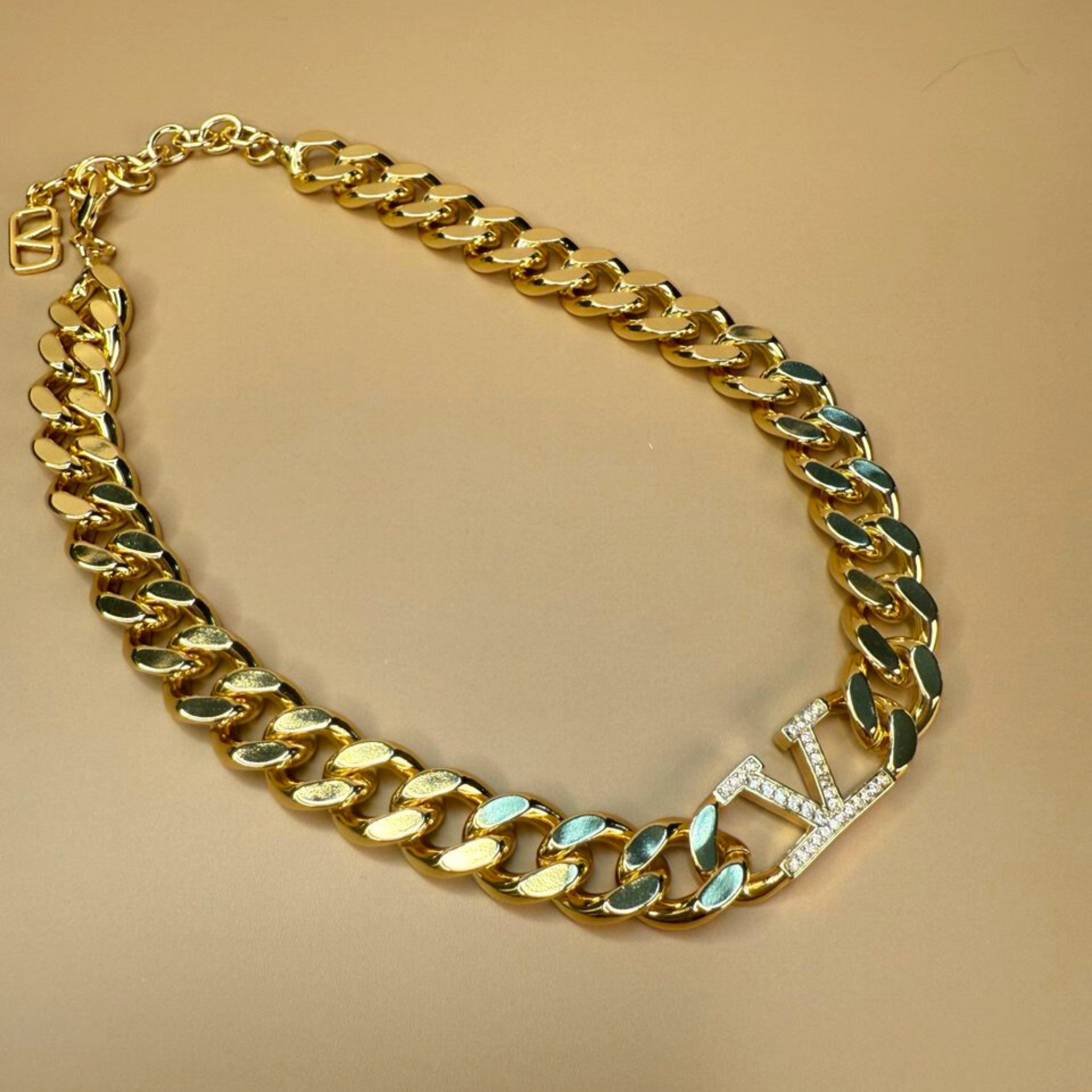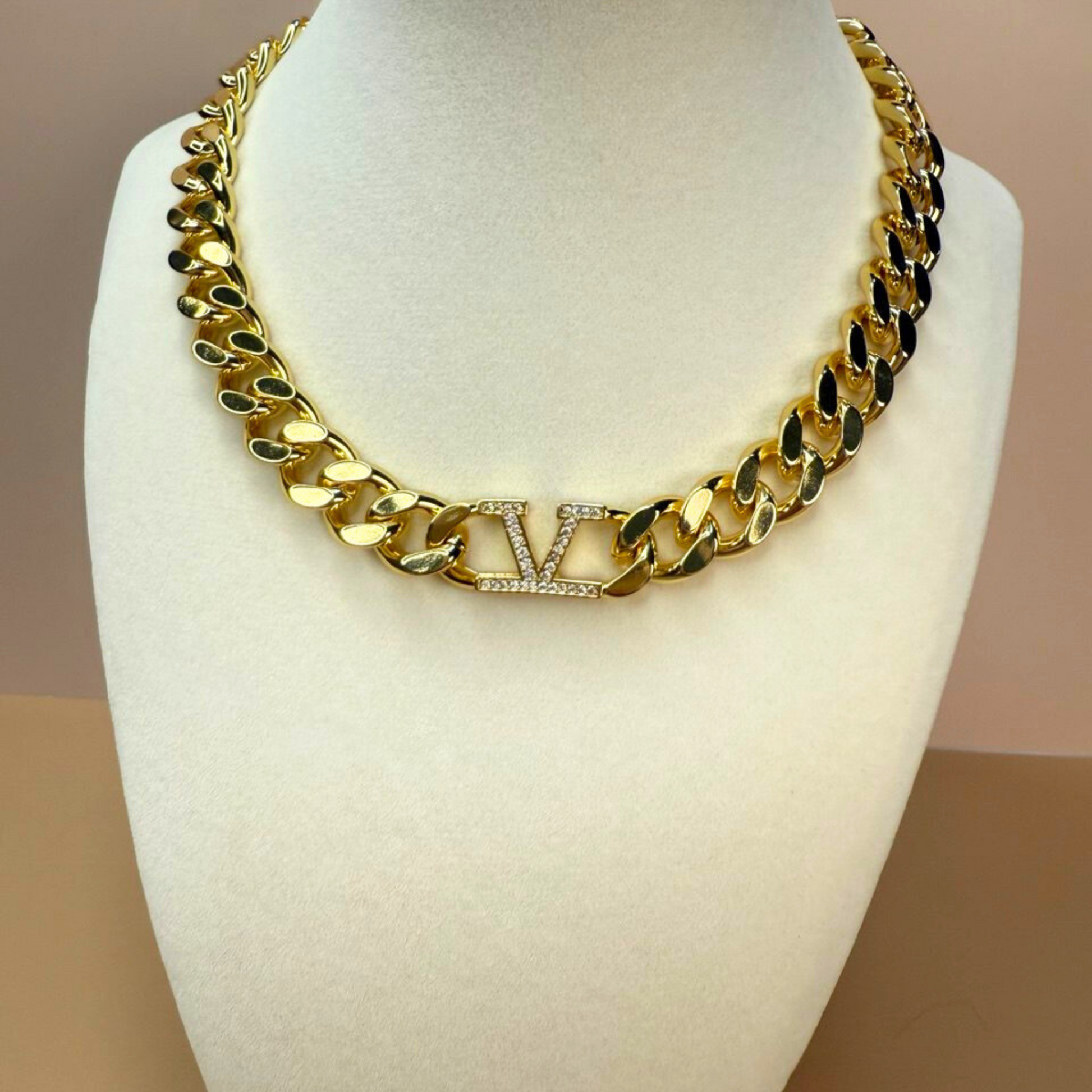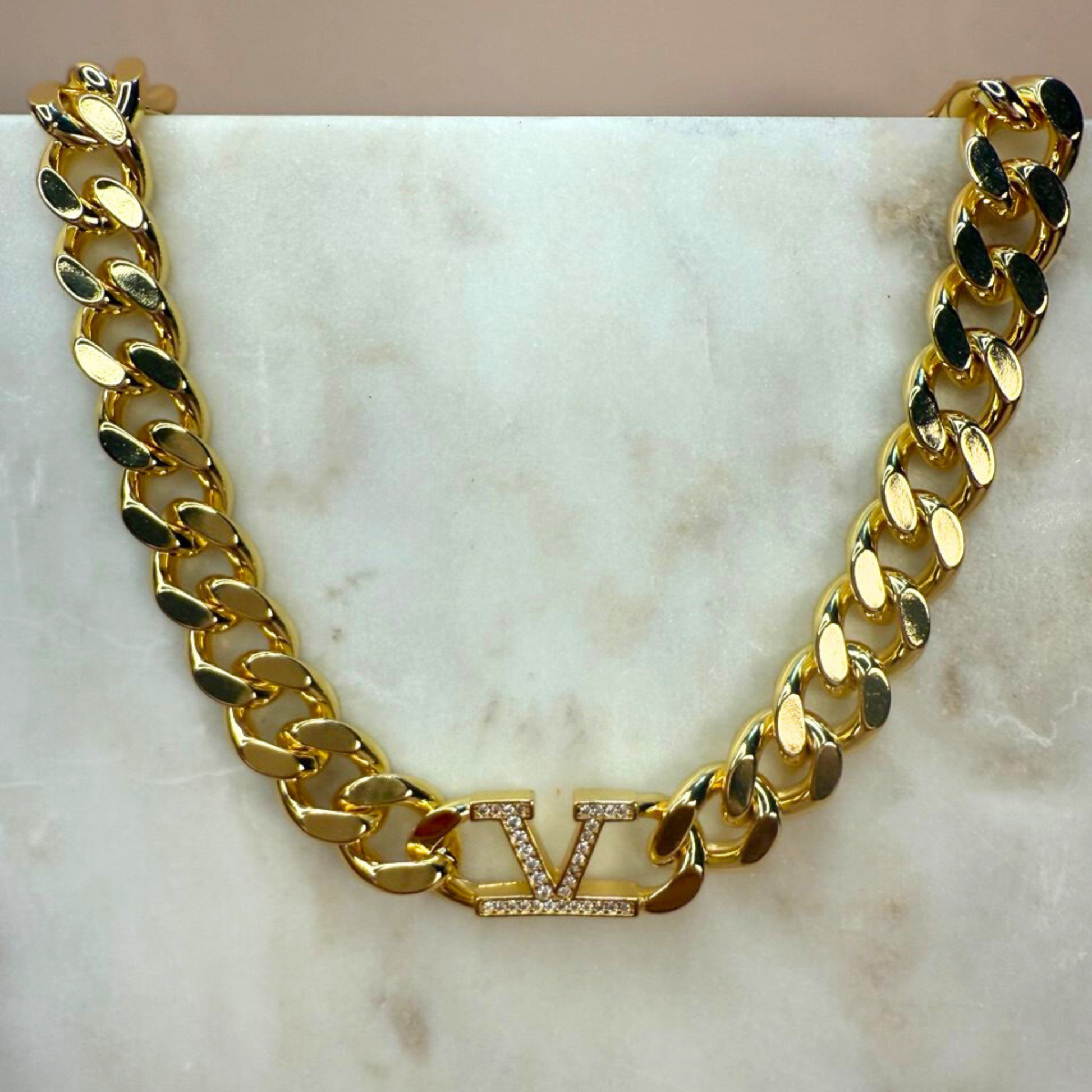 This stunning Cuban link chain offers a perfect blend of edgy and elegant. The chunky, polished chain is a true statement piece on its own, while the shimmering crystal-encrusted initial charm adds a unique and personalized flair. Perfect for a night out or as a standout accessory for your daily style.