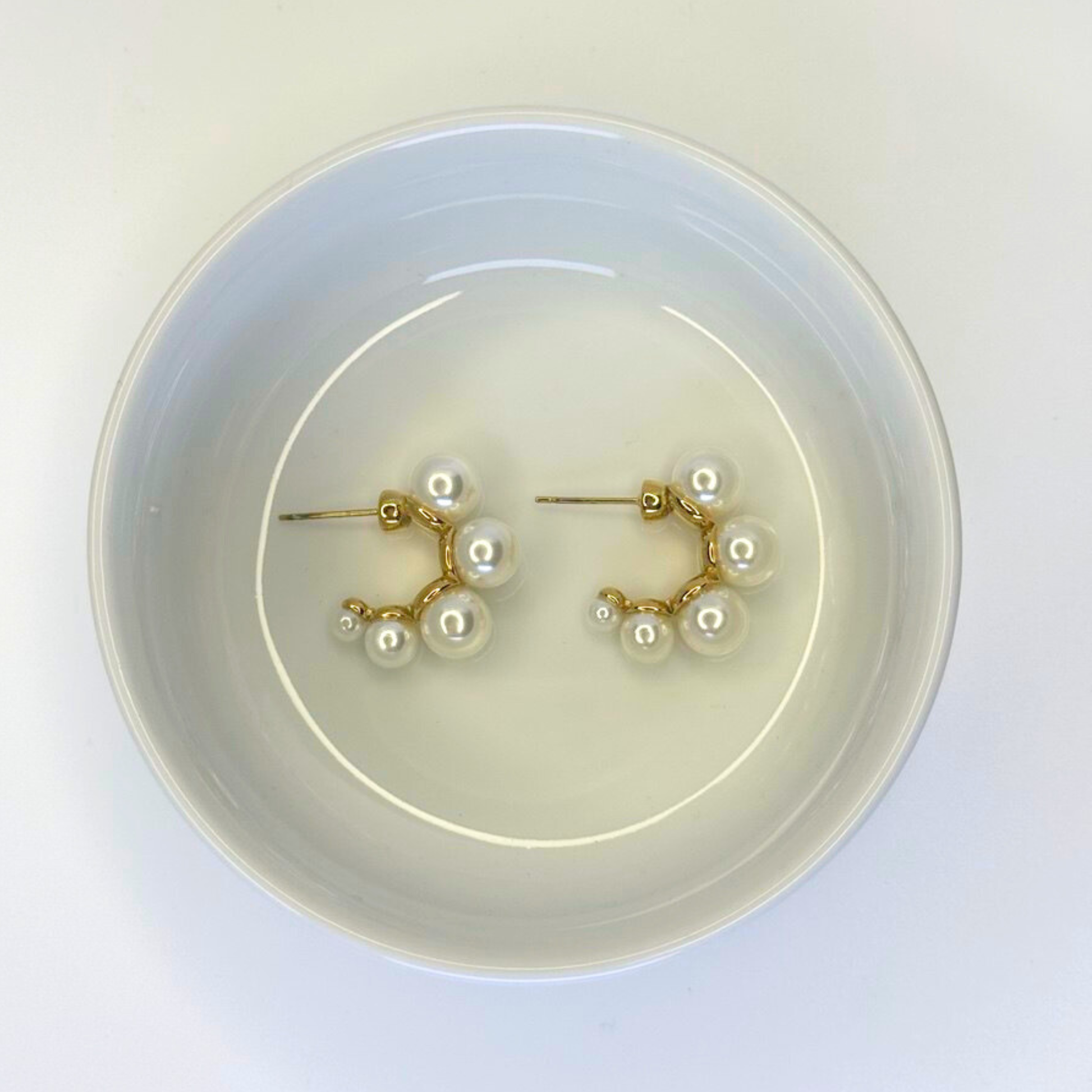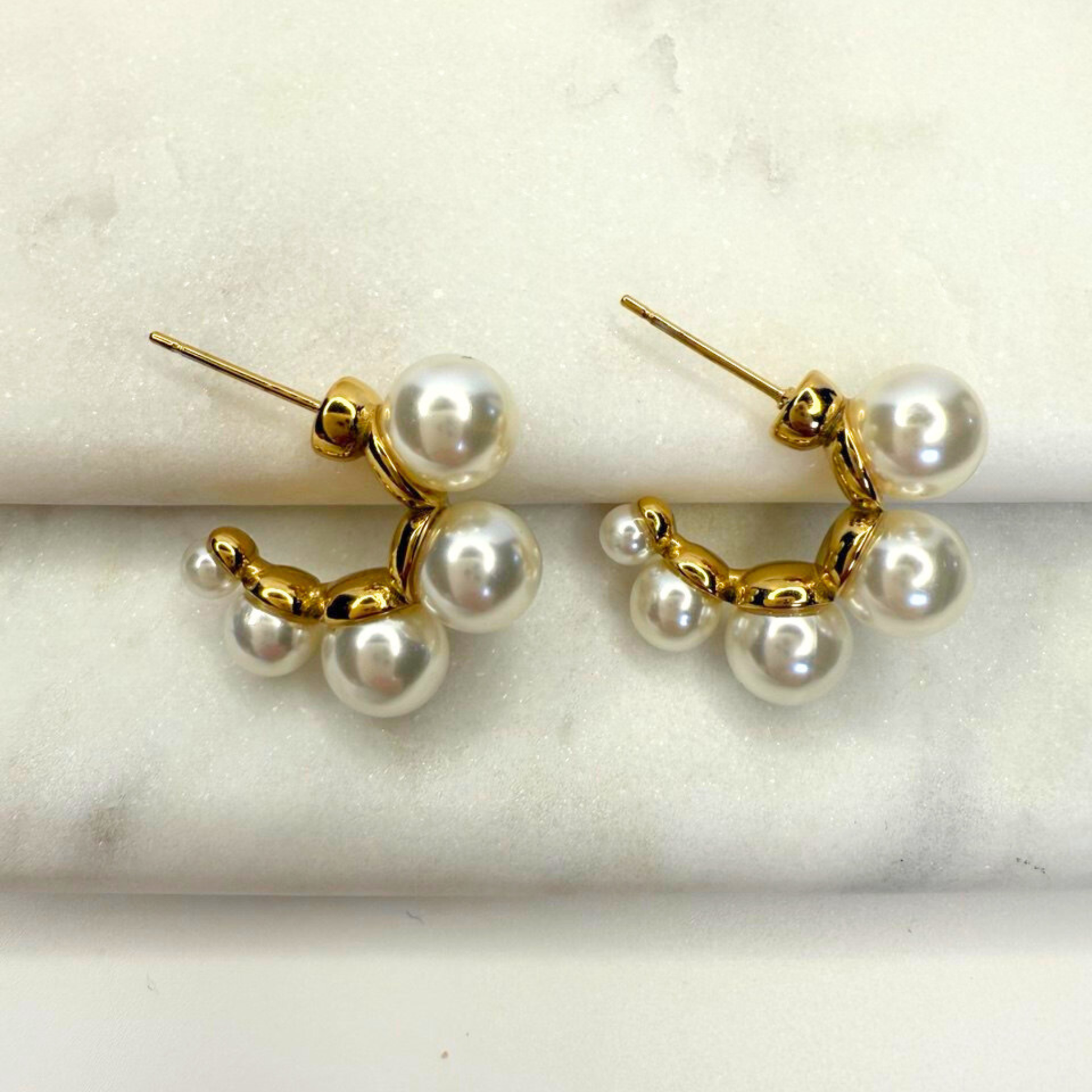 A modern take on classic elegance. These gold-toned Pearl Cluster Huggies are adorned with a cascade of lustrous pearls, creating a sophisticated and fresh look that's perfect for elevating your everyday style.